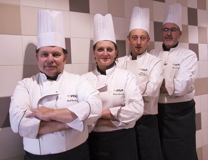 Het culinair team van 4 bestaat uit Dirk Van Calster (technisch adviseur hotelafdeling), Frédéric Vandermeer (leraar keukenpraktijk), Bert Vogels (leraar slagerijafdeling) en Frieda Lemmens (lerares bakkerijafdeling). Het veelzijdige team van PIVA neemt deel in de categorie ‘gemeenschapsrestauratie’.